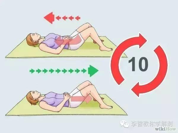 动作要领:平躺,双脚分开与肩同宽,膝盖弯曲。吸气时,将骨盆向上抬起,呼气时,慢慢放下。每组10-15次,每天3-5组。